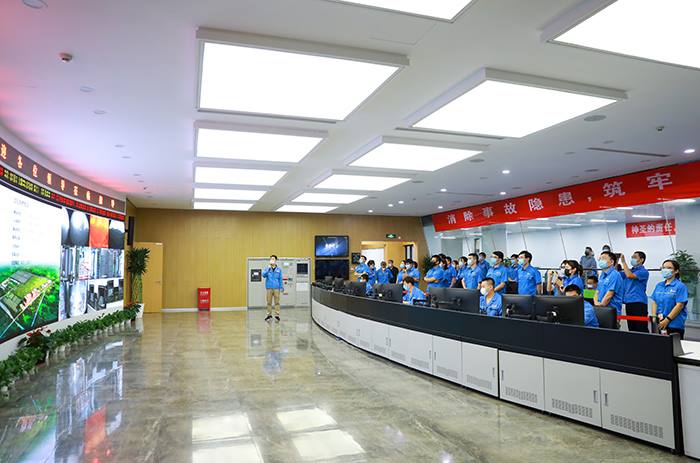 跟随讲解员的脚步,参观人员首先走进阿苏卫焚烧厂中控室。在这里,大家详细了解阿苏卫循环经济园区的运营情况,并对照LED屏幕显示的实时更新内容,听取了讲解员关于炉膛温度、烟气排放指标等情况的介绍。