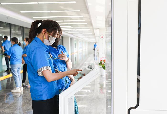 中厅分为四个展示区域,分别是“认识生活垃圾”“生活垃圾焚烧发电”“阿苏卫的社会价值”“城市因我更美丽”。参观人员通过短片介绍和数据对比,直观地掌握了各种垃圾处理技术的优缺点,深刻认识到垃圾分类工作的紧迫性和必要性。在VR游戏互动区,大家戴上VR眼镜、站上3D站台,沉浸式地进行了垃圾焚烧处理全流程的体验,“看”到了焚烧工艺运行的真实样貌。
