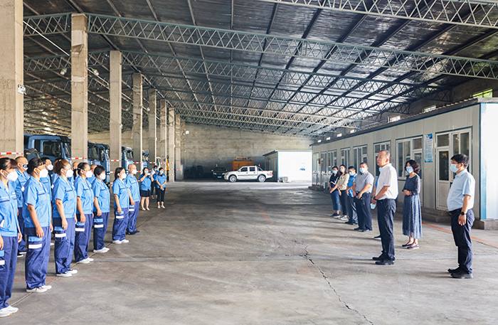 随后,陈清同志与大家亲切座谈。何亮同志就集团疫情防控、防暑降温、生产经营工作进行了汇报。陈清同志对集团各项工作给予充分肯定,并表示集团作为首都环卫主力军,近期在疫情防控、服务市民方面取得显著成效,有力保障首都城市的平稳运行。针对近期连日高温的情况,要求集团一定要落实好防暑降温各项措施,密切关注室外作业人员身体状况,给一线职工送去关爱,切实保障人员安全。