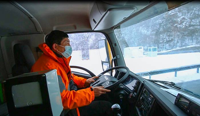 董建刚驾驶作业车辆在延庆赛区开展清雪作业