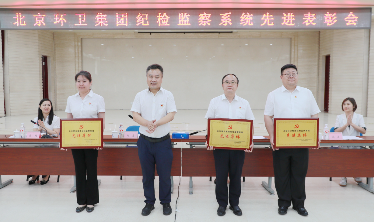 为进一步树立纪检监察干部队伍的良好形象,激励集团各级纪检监察机构和广大纪检监察干部奋发进取,担当实干,集团纪委近期开展了纪检监察系统先进集体和先进个人评选工作,并在会议现场进行了表彰,苗传斌同志宣读了《关于表彰北京环卫集团纪检监察系统先进集体和先进个人的决定》,授予北京城市机扫服务有限公司纪委等3个单位“北京环卫集团纪检监察系统先进集体”、北京环卫集团环卫服务有限公司纪委书记张景军等6名同志“北京环卫集团纪检监察系统先进个人”。集团党委书记、董事长何亮,纪委书记苗传斌分别为先进集体代表和先进个人颁奖。